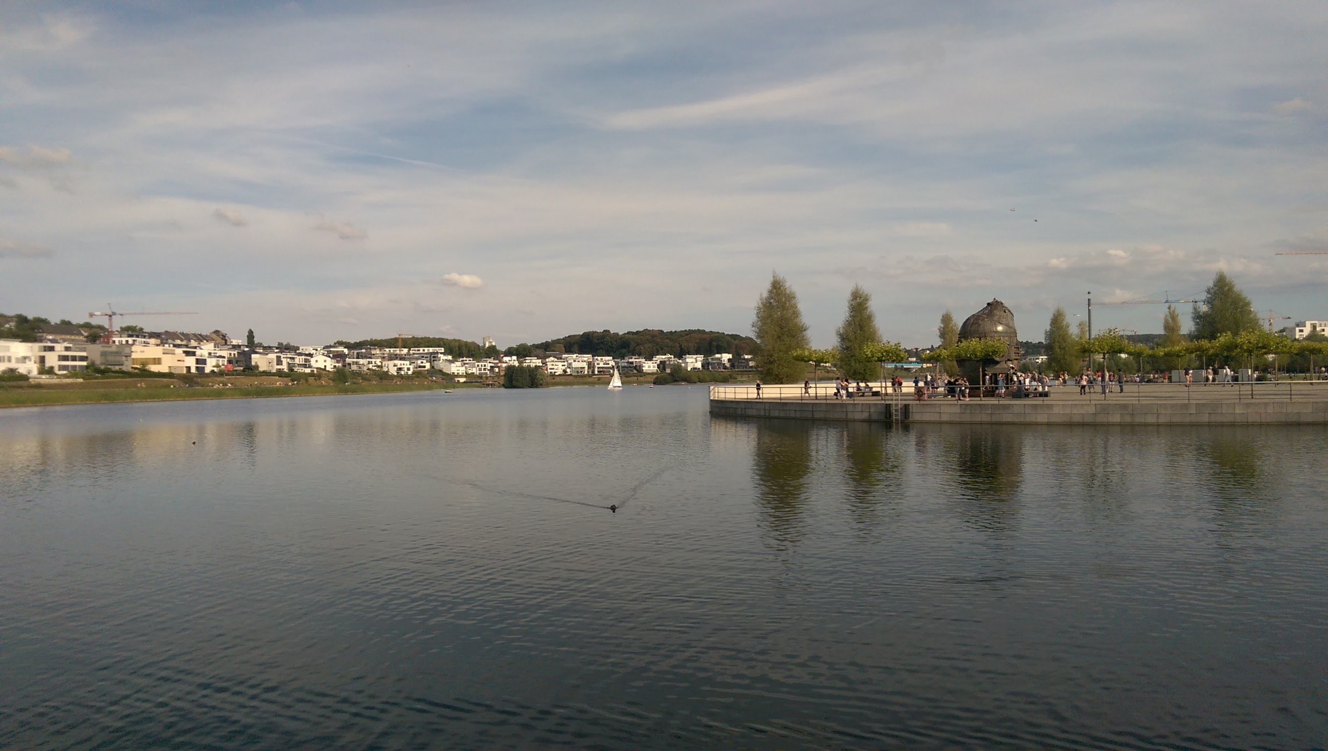 Toch is het hier heerlijk wandelen, flaneren over de “Uferpromenade”, waarbij zwemmen in het meertje verboden is; er zijn zeilboten en Tretboote (waterfietsen) te huur. Het meertje is afgesloten, je kunt er met de boot niet “in of uit”; voor een verbinding met de nabijgelegen rivier de Emscher is deze rivier nog te vervuild. De “Renaturierung” van de Emscher “kommt langsam voran”.